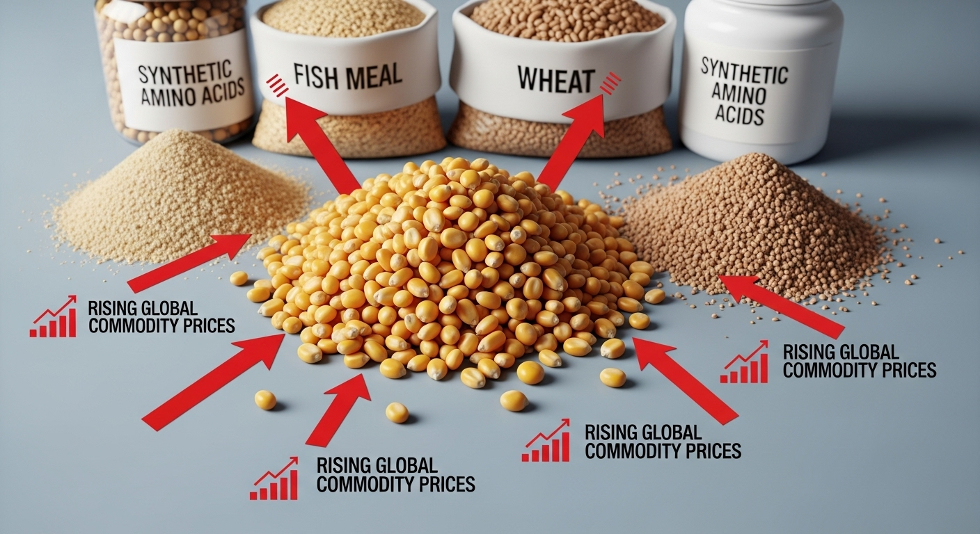 Bahan baku pakan utama seperti jagung dan bungkil kedelai (Soybean Meal/SBM) sering kali harus diimpor atau harganya sangat fluktuatif mengikuti harga komoditas global. Ini menjadikan harga pakan sangat sensitif terhadap nilai tukar mata uang dan kebijakan perdagangan.