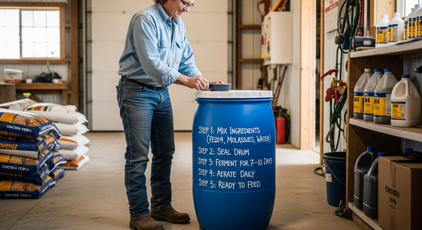 Fermentasi adalah salah satu cara paling efektif dalam Cara Membuat Pakan Hemat untuk Ayam Petelur. Fermentasi mengubah pakan murah (seperti dedak, ampas tahu, atau limbah sayuran) menjadi pakan berkualitas premium dengan manfaat: