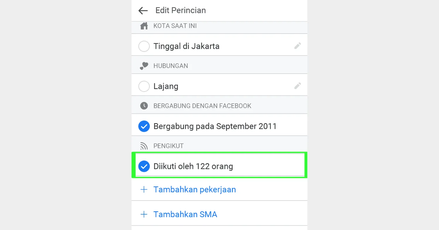 Adapun perlu untuk kalian ketahui bahwa, apabila setelah kalian melakukan langkah-langkah tersebut namun tombol pengikut tak muncul seperti pada gambar di atas, maka bahwa memang benar kalau pihak Facebook hanya memilih akun-akun tertentu saja yang memang memenuhi syarat yg dapat mengaktikan tombol pengikut FB tersebut.