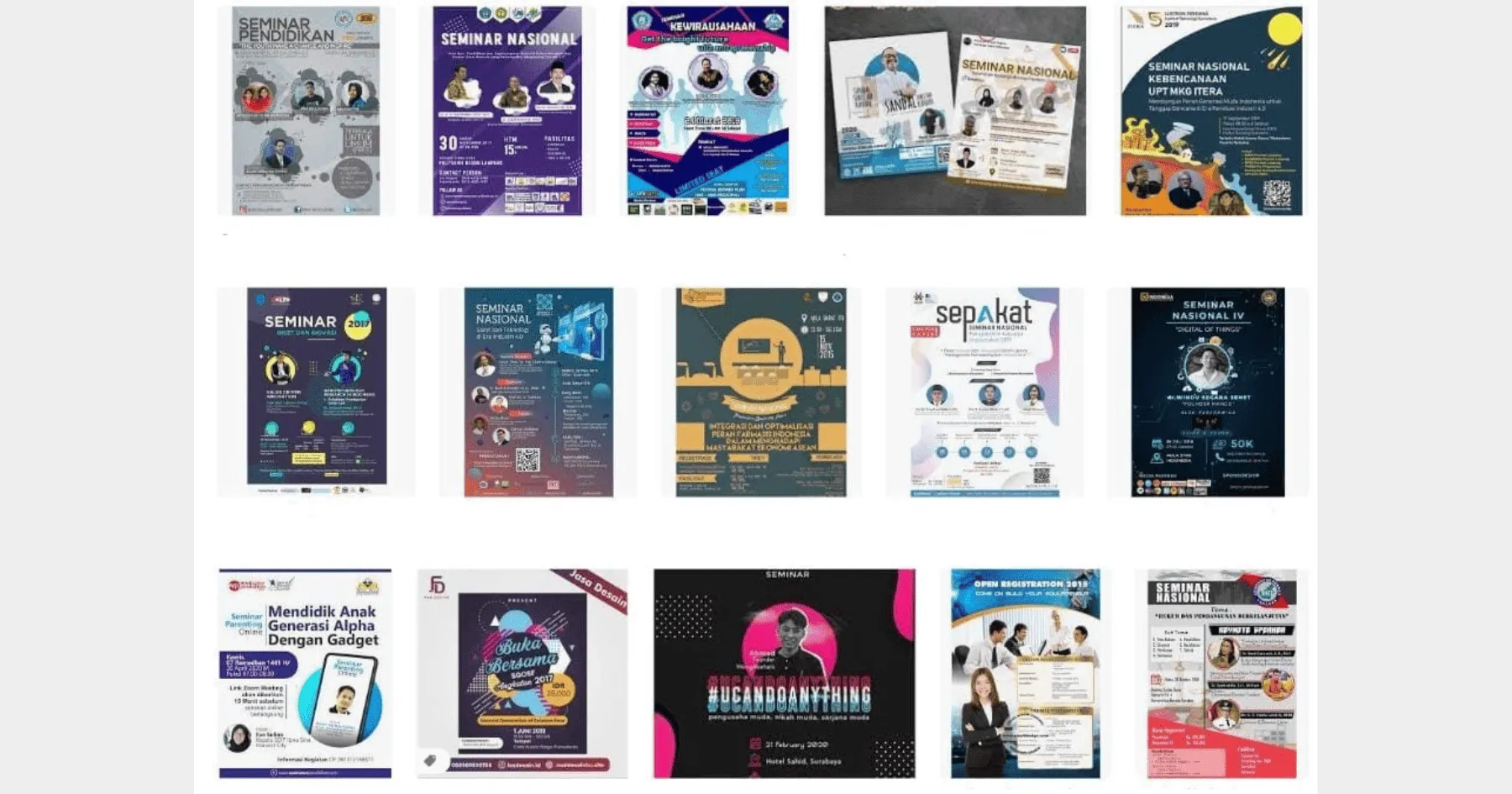 Selanjutnya, poster kegiatan yang banyak dicari yaitu contoh poster kegiatan seminar yang biasanya memuat informasi event atau acara berbasis seminar atau webinar. Ada berbagai acara seminar atau webinar yang diadakan dengan tema antara lain kewirausahaan, public speaking, nasional, politik, kebangsaan, dan masih banyak lagi. Kegiatan seminar bisa dilakukan dengan peserta khusus maupun umum serta bisa juga gratis atau berbayar.