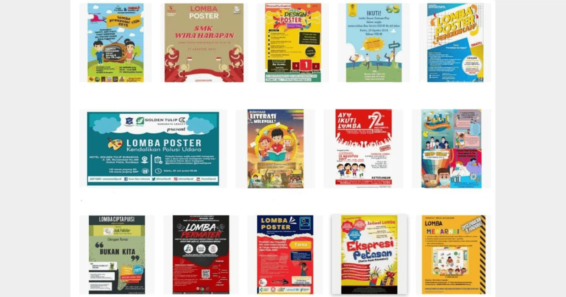 Terakhir, contoh poster lomba menjadi kata kunci yang cukup dicari karena media poster sangat cocok untuk memberikan informasi perlombaan atau kompetisi yang biasanya dibagikan untuk umum. Materi atau informasi yang disampaikan pada poster lomba tentu saja bersifat ajakan serta pesan-pesan yang ingin disampaikan oleh penyelenggara lomba. Bagi kamu yang mencari referensi tentang contoh poster lomba bisa disimak sebagai berikut:
