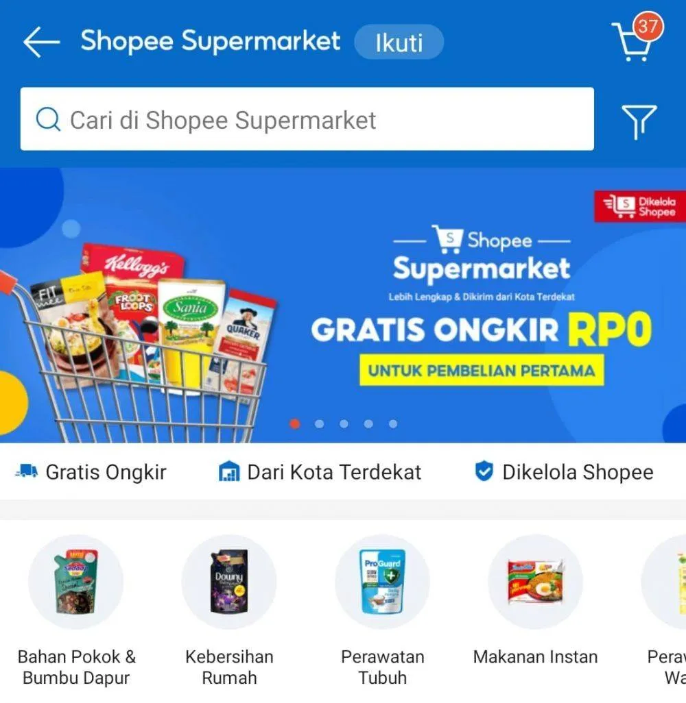Shopee Supermarket ialah salah satu layanan Shopee yang memungkinkan para pengguna untuk dapat berbelanja kebutuhan pokok dengan harga terbaik secara online. Adapun layanan Shopee satu ini hadir dengan banyak sekali promosi, penawan yang menarik, entah itu diskon, cashback, hingga bahkan free ongkir.